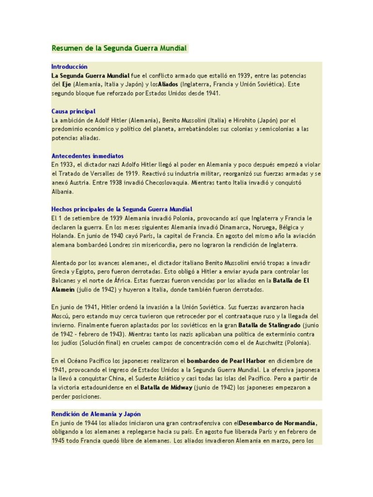 Resumen de la segunda guerra mundial introduccin la segunda guerra mundial fue el conflicto armado que estall en 1939, entre. Aquí os dejo un resumen en esta entrada os dejo un breve resumen de la segundo guerra mundial para que podáis tener una idea general del mayor conflicto bélico de. A caixa com a correspondência foi entregue num centro de reciclagem, mas através do twitter foi possível encontrar os familiares do casal. Ver más ideas sobre guerra mundial, guerra, segunda guerra mundial. los contendientes no perseguían la sola rendición del enemigo, sino que su destrucción total.